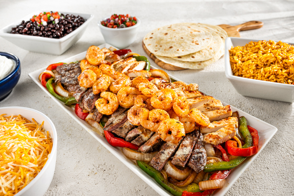 With cilantro, bell peppers & onions. Served with Mexican rice, black beans & flour tortillas. Substitute flour with corn tortillas (minus 290 cal). Sour cream, pico & shredded cheese included on the side (add 1030 cal). House-made guacamole served upon request (add 200 cal). Serves up to 4.